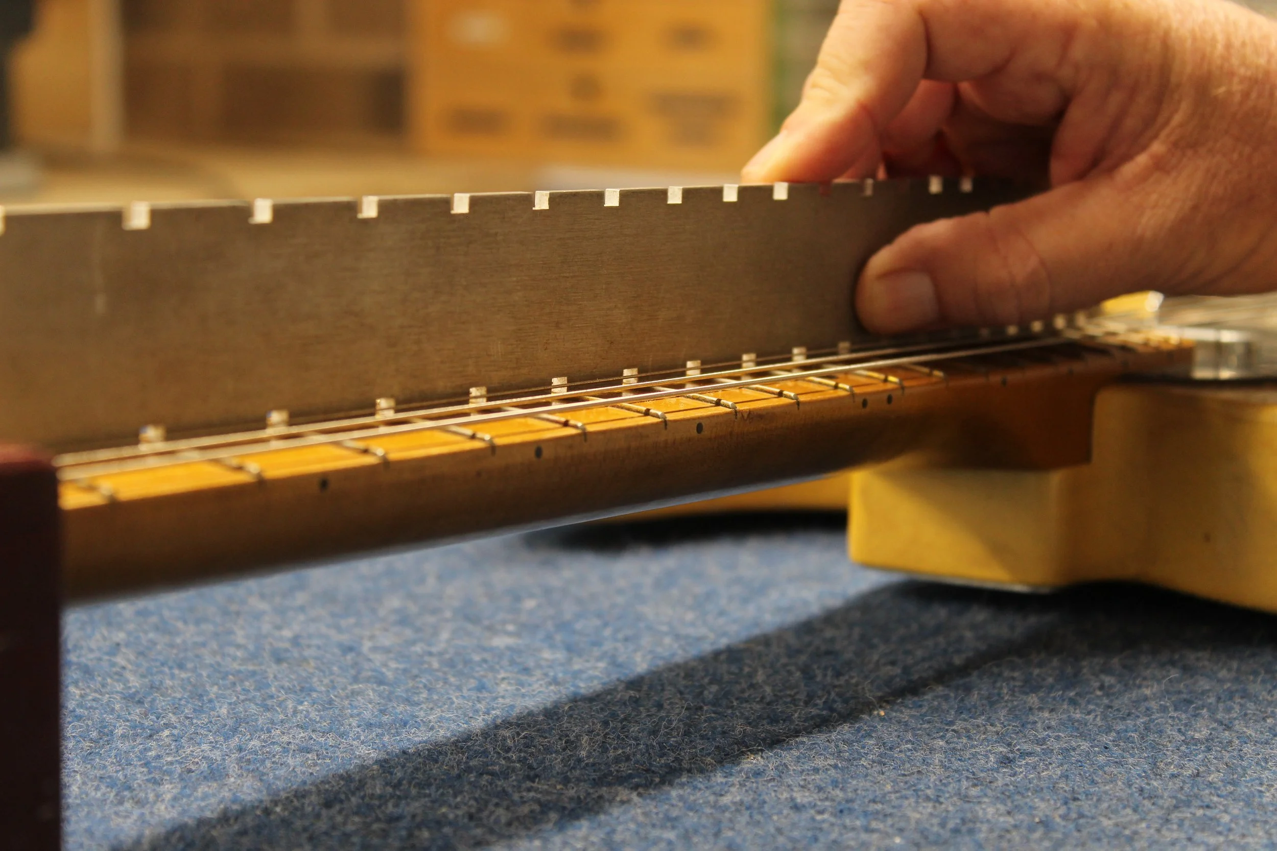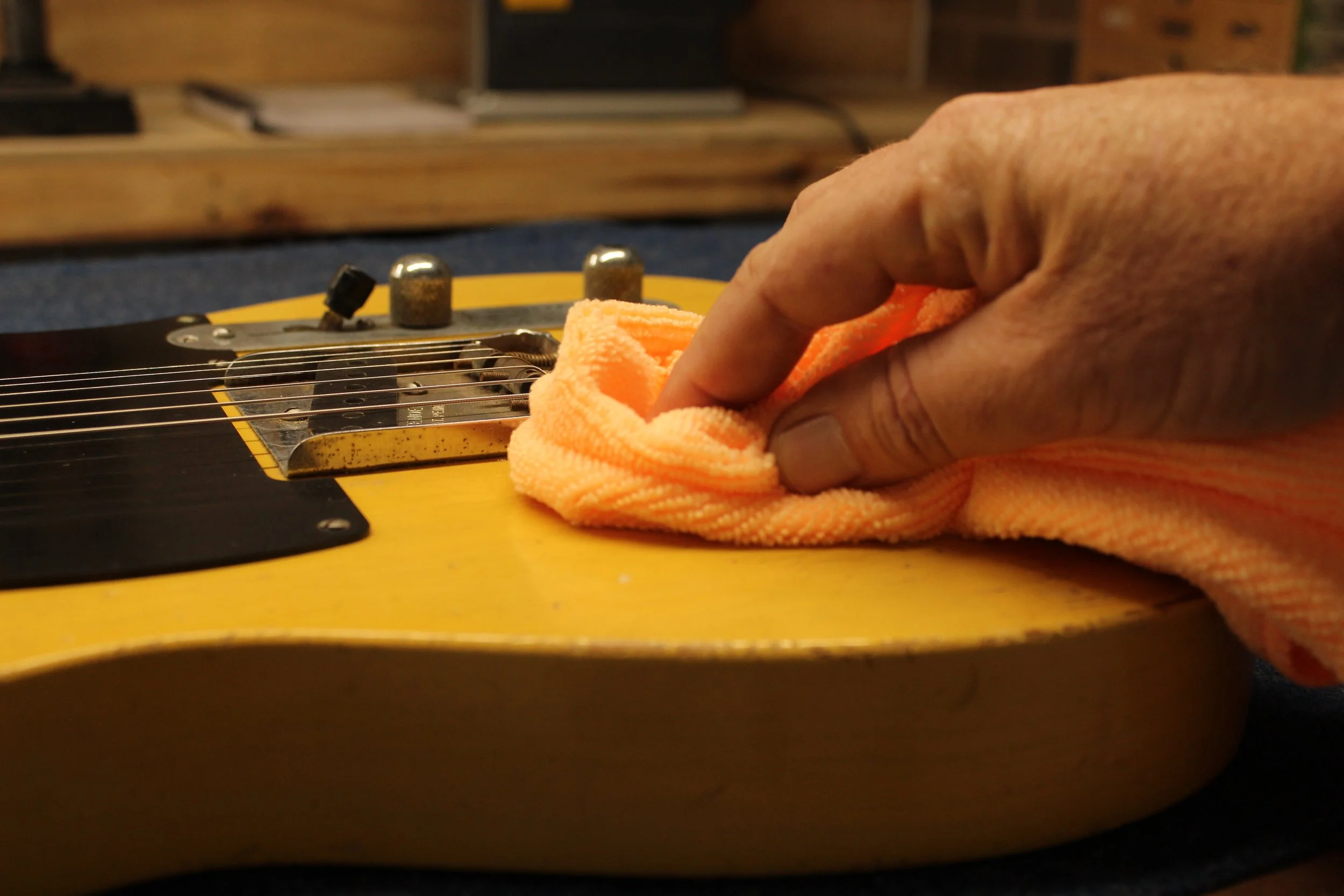 Set pickup height, inspect wiring and test pots, clean output jack and ensure all hardware is in proper working order.